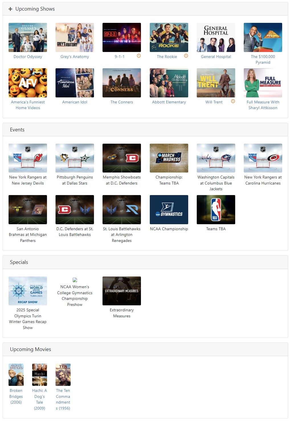 Per Channel Program Views - DataMeister - 2025-04-04 https://features.jellyfin.org/posts/3241/per-channel-program-views In the Guide when you click on a channel logo it currently shows a vertical view of the timeline for that channel. Can we get an alternate view that shows the program groupings just for that channel? The Channels DVR does this, and I find it helpful when browsing for something new. Like the following ABC channel: |