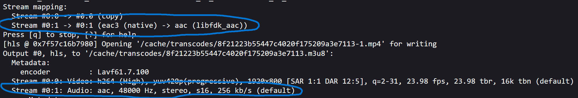 How to confirm that audio is being transcoded to 2 channels? - alyflex - 2025-11-30 I am trying to confirm that my audio is correctly being transcoded to 2 channels, and while I can see the following message on the activity page: Quote:The video stream is compatible with the device, but has an incompatible audio format (DTS, Dolby TrueHD, etc.) or number of audio channels. The video stream will be repackaged losslessly on the fly before being sent to the device. Only the audio stream will be transcoded. Power consumed by direct streaming usually depends on the audio profile. Only the video stream is lossless. It does not actually tell me whether it is correctly transcoded. Is there anyplace else it might be written? I'm guessing the information is in the logs, but I haven't been able to find it, so if anyone could point it out to me I would appreciate it: RE: How to confirm that audio is being transcoded to 2 channels? - ArneR - 2025-11-30 It's transcoding to AAC as expected, and looking further down inĀ the log it states stereo. |