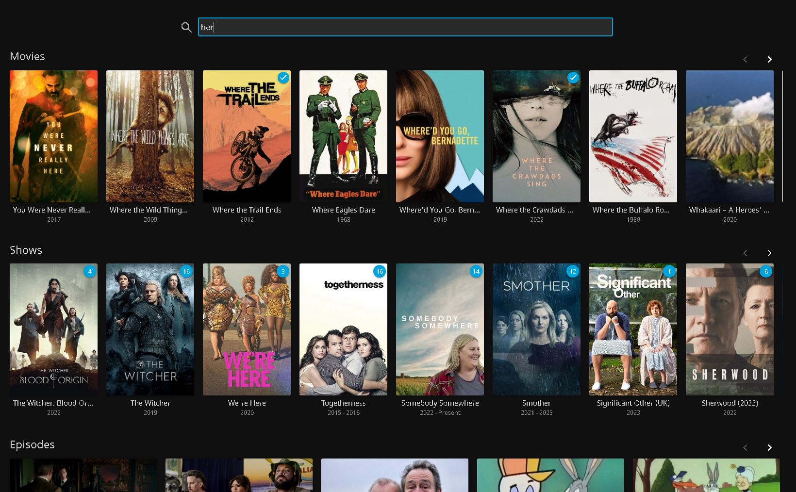 Search functionality - aotearoasteve - 2024-05-16 I have just encountered some interesting behaviour in regrads to search functionality. I have the 2013 movie "her" in my movie library which contains a total of 5123 items. I can find it in the alphabetical list, I can search it on my linked jellyseer instance and hit the "play on jellyfin" link and it will open the movie page in jellyfin. What I can't seem to do is search it out. The probblem seems to be that string "her" appears in too many other titles (wHERe, HERe, etc). I have tried searching "her" "Her" "her 2013" "her (2013)" and so on, get a couple of pages of results but I can't get it to appear in the 2 pages of results. I tested some more and get the same problem with the movie "It". The movies are correctly identified etc. I'm guessing the search functionality could be improved a bit to favour exact complete matches over partiual string matches? Any other thoughts here? Thanks very much in advance! Version: 10.8.13 running in docker on a debian VM on proxmox RE: Search functionality - TheDreadPirate - 2024-05-16 10.9.1 is the current version and should have better search. Backup your Jellyfin /config directory before upgrading since you cannot downgrade afterwards. With the backup you can downgrade after restoring the backup. RE: Search functionality - aotearoasteve - 2024-05-20 thansk for that, I upgraded and yep - search functionality has improved, search seems to take a bit longer but works better now thank you !