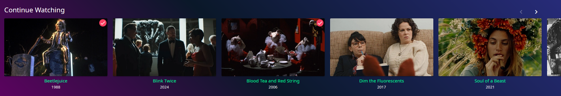 "Continue Watching" section filled with movies that shouldn't be there - Kandy - 2024-09-25 For a while now the "Continue Watching" section on my Jellyfin server is being populated by movies that don't belong there. I've attached an image that shows the issue. As you can see, none of these movies are in a partially watched state. The first three (Beetlejuice, Blink Twice, and Blood Tea & Red String) are the most recently-watched three movies by other users on my server. Past that, most of these are movies that are new to the collection and haven't been watched at all. If I double-click the watched indicator, they'll disappear from the Continue Watching section for a while but eventually return. I can't make sense of it, and it renders this section completely useless. RE: "Continue Watching" section filled with movies that shouldn't be there - TheDreadPirate - 2024-09-25 Are you using the Trakt plugin? Or did you enable saving of watch status in NFOs? RE: "Continue Watching" section filled with movies that shouldn't be there - Kandy - 2024-09-25 I am not using trakt in any way. I do have nfo watch status enabled for my admin user, yes. RE: "Continue Watching" section filled with movies that shouldn't be there - TheDreadPirate - 2024-09-25 Can you look at the NFO for one of these videos and check if the "resume" field has a position that is not zero? Also, are your NFOs externally created or did Jellyfin create them? RE: "Continue Watching" section filled with movies that shouldn't be there - Kandy - 2024-09-25 I think the NFO files are generated by Jellyfin, yes. The relevant section from Beetlejuice: Quote: <playcount>1</playcount> RE: "Continue Watching" section filled with movies that shouldn't be there - TheDreadPirate - 2024-09-25 Can you share your full log via pastebin? RE: "Continue Watching" section filled with movies that shouldn't be there - Kandy - 2024-09-25 (2024-09-25, 04:16 PM)TheDreadPirate Wrote: Can you share your full log via pastebin? Turns out today's log is still small enough to be an attachment. RE: "Continue Watching" section filled with movies that shouldn't be there - TheDreadPirate - 2024-09-25 I'm wondering if the Kodi syncs are the cause. The watch status they are reporting to the server are conflicting or something. RE: "Continue Watching" section filled with movies that shouldn't be there - Kandy - 2024-09-25 I thought about that and I suppose it's possible, but it'd be surprising to me, because as I mentioned, the first three are movies that'd been watched recently by other users who don't use kodi at all. The fact that the first three movies shown in Continue Watching are films that users have viewed recently on other clients isn't information my kodi client should even HAVE, right? RE: "Continue Watching" section filled with movies that shouldn't be there - Kandy - 2024-09-25 Also, I suspect that many of those kodi updates are from when I've been trying to get rid of the false entries, as I usually click the "watched" button twice to kind of reset those entries and get them to disappear, so the "2 updates" entries are likely me setting them as watched/unwatched. |
