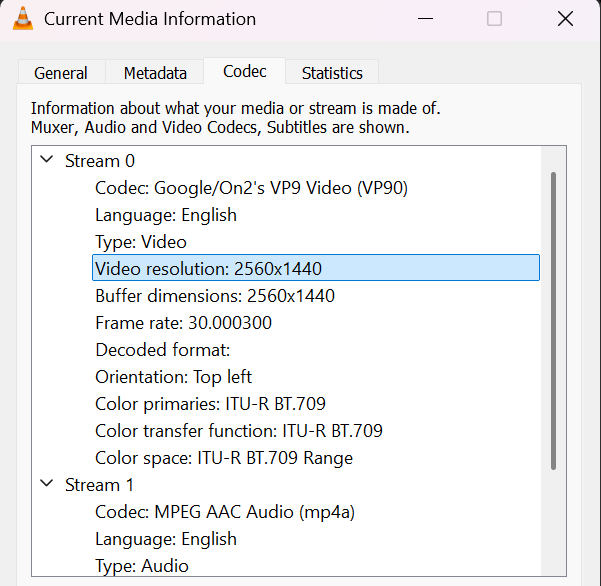 Videos that are 1440p-VP9 are incorrectly being reported as 1080p VP9 SDR in metadata before playback starts.