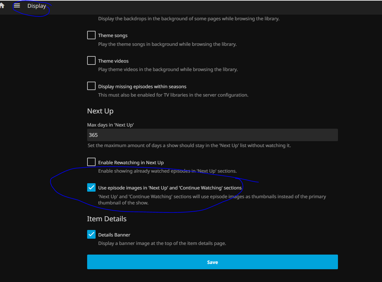 i would like to change the image type of the "recent add" section, or "continue watching" section, but i didn't find the menu to do it ?