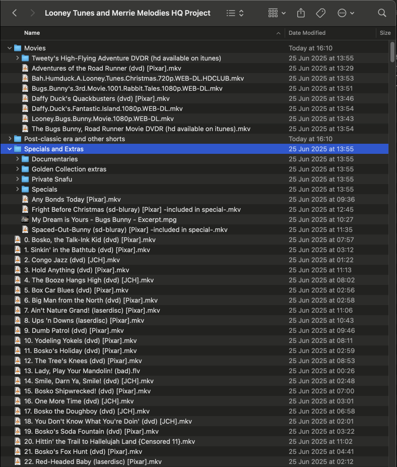 I "came across" this huge Looney Tunes collection and want to create a dedicated Library for it, but have it somewhat well organized.