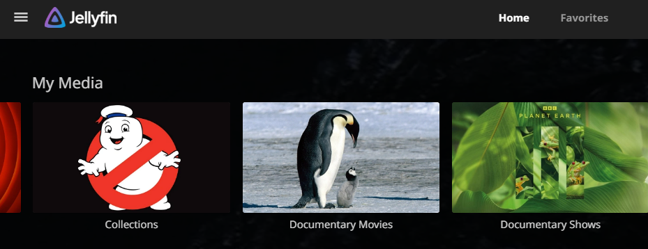 Do you have the Library called Collections selected to display on your home screen under [User] -> Home?