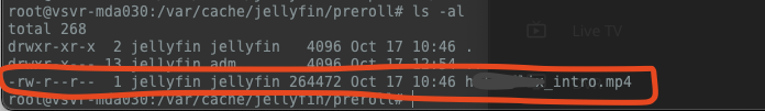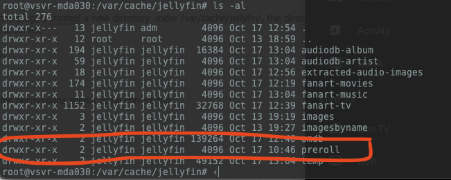 So far, I've installed the plugin, created a new directory under /var/cache/jellyfin/, the directory is name preroll, I've ensured that the permissions and ownership of the directory is owned by the jellyfin user and have restarted the server.