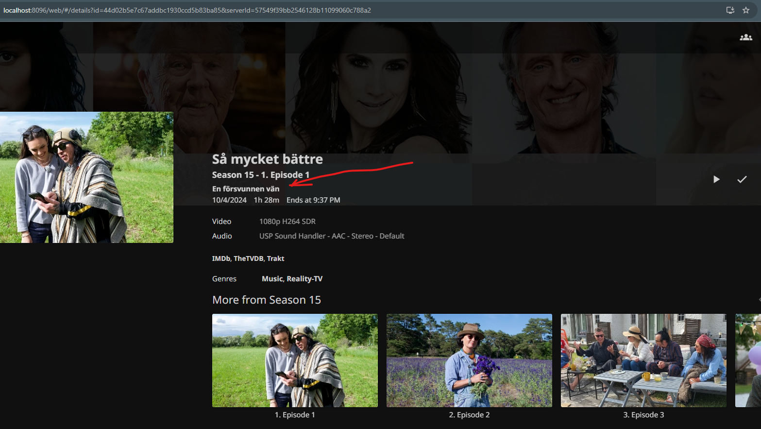 The strangest thing though is that on one screen I actually see the correct tile of the episode. See my two screenshots, in the second screenshot, you see the actual title of the episode, that is "En försvunnen vän".