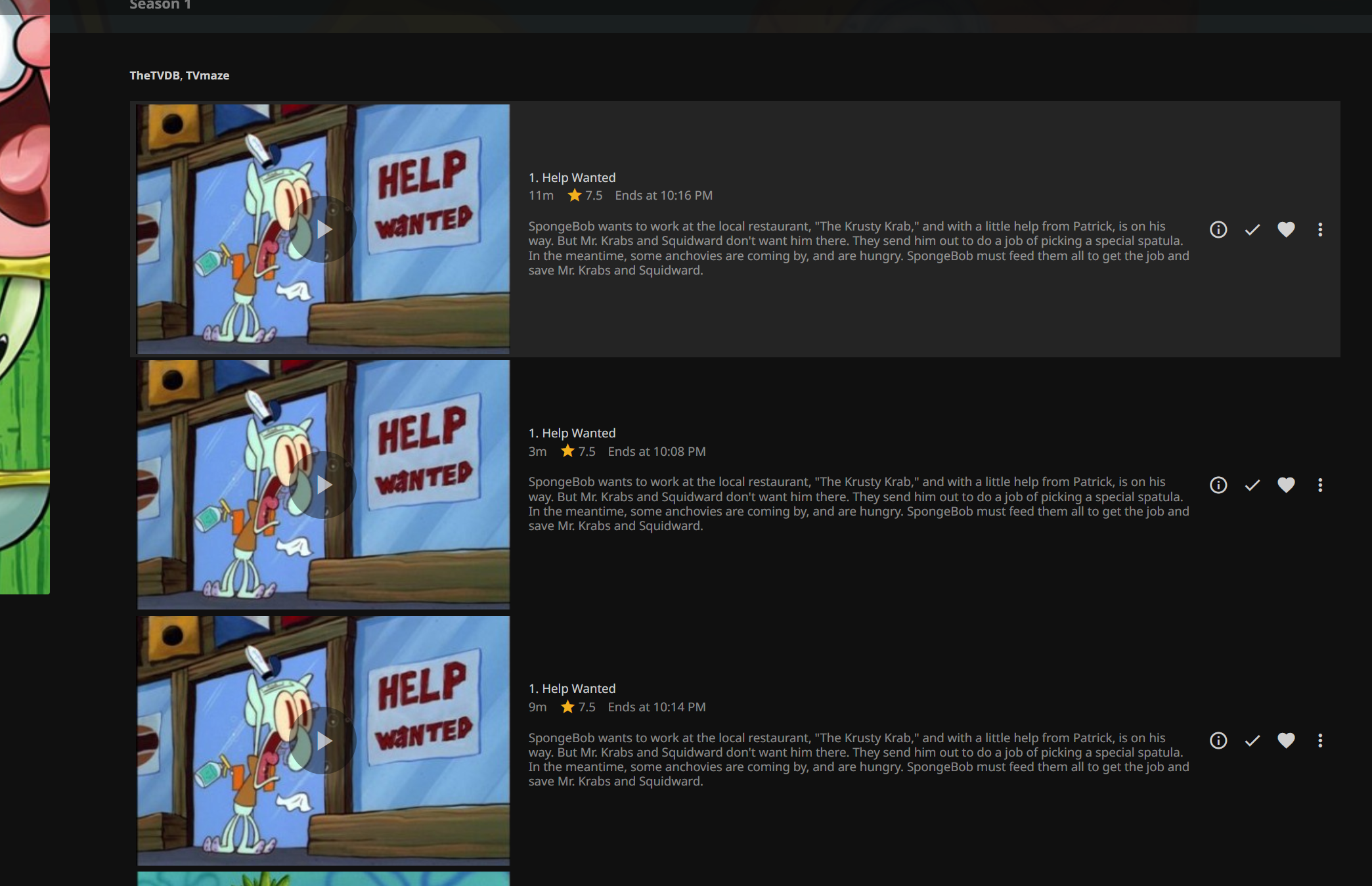 So I get 3 Help Wanted (S01E01) then 2 Reef Blower (S01E02) and so on, but each of the 3 are actually different files. So Help Wanted is right, but then the second and third are actually Reef Blower and Tea at the Treedome.