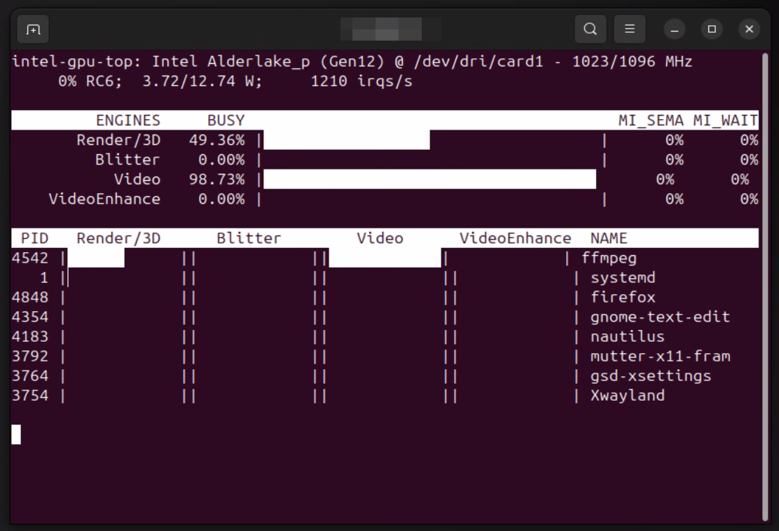 intel-gpu-top shows that ffmpeg is being used to transcode, but I don't know how to tell if this is the jellyfin version of ffmpeg or regular/vanilla ffmpeg.