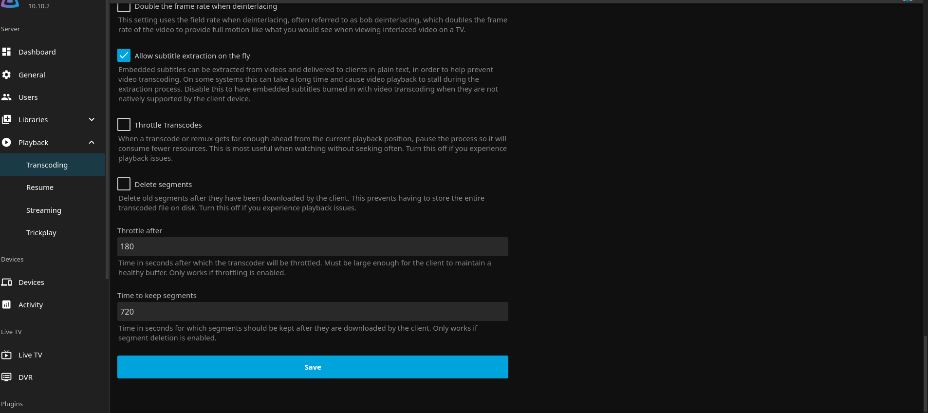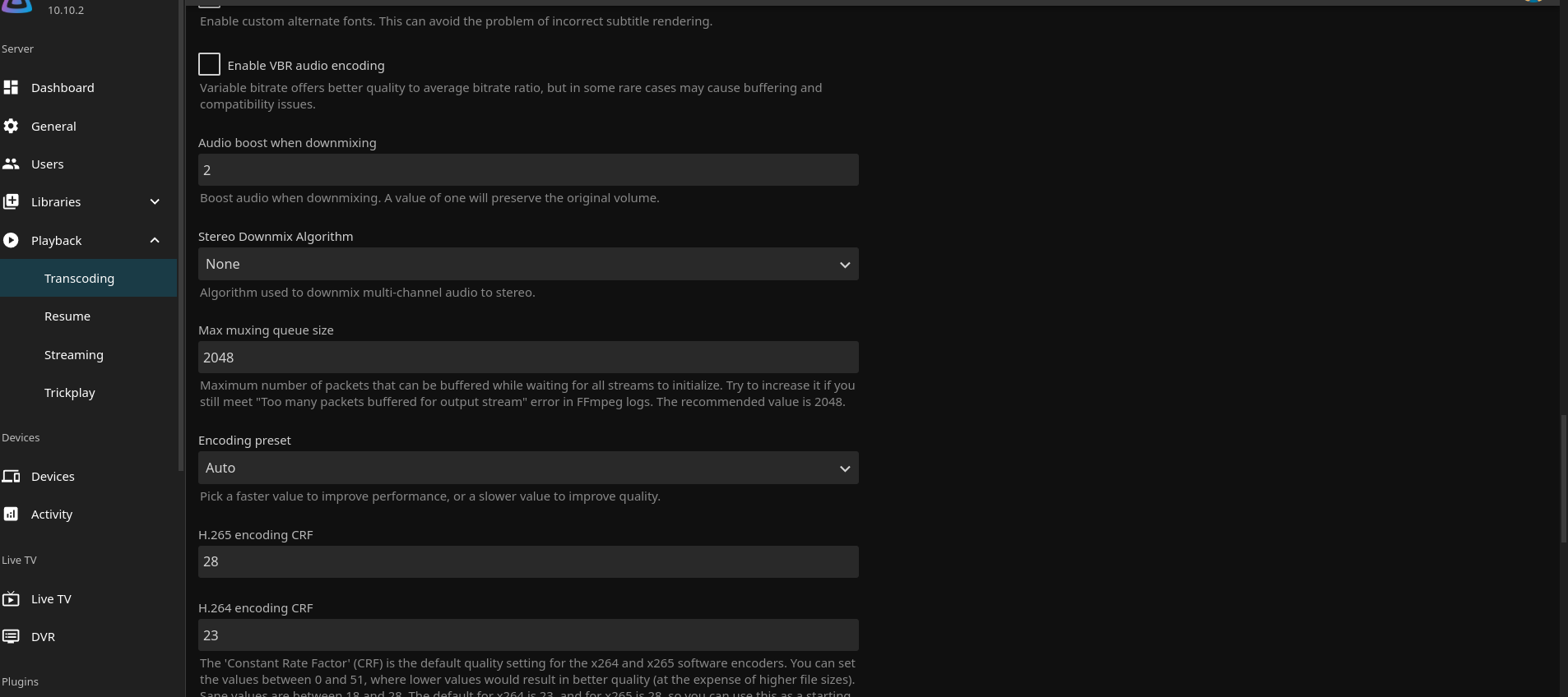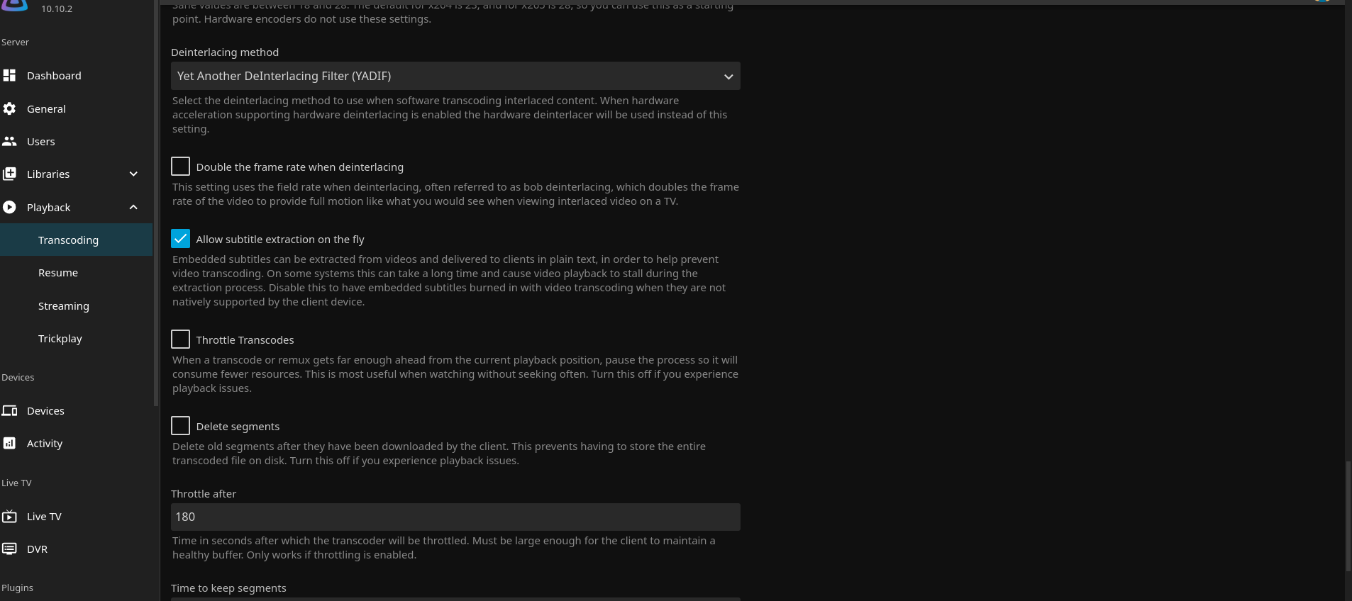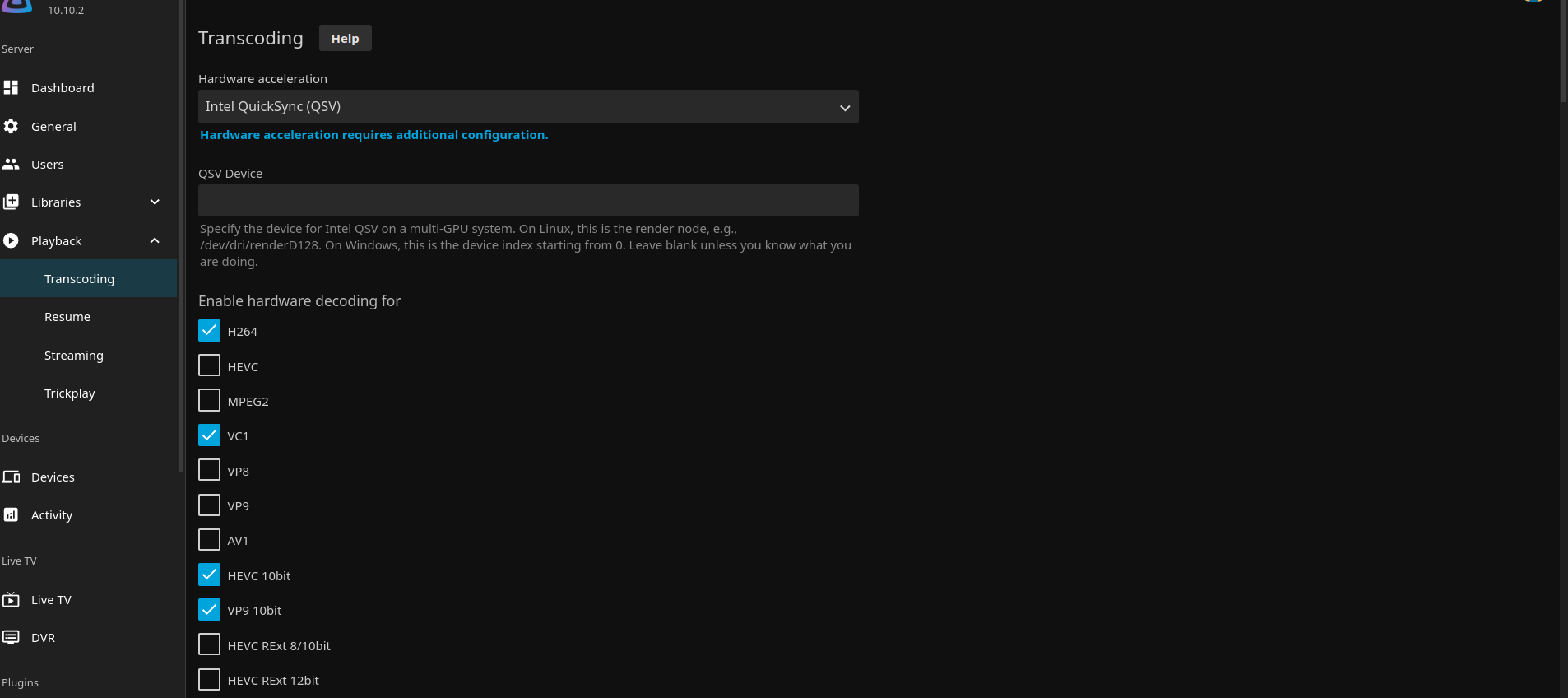I don't quite understand, I have a lot more issues with my new setup than my old (not Jellyfin recommended) one. old setup: - Running v10.9.11 on Tuxedo laptop with Ubuntu 24.04.1 in Docker containers - Ryzen 8845HS (Radeon 780M iGPU) - 32GB RAM - 4TB m.2 SSD that has both the OS and the media on it - Not connected with ethernet cable, hosting on WiFi (about 200/300 Mbit on average) Nothing done in terms of hardware acceleration, it was all CPU powered & out of the box Jellyfin container, no configuration done. No noise issues or CPU that has high load while playing media. Resuming an episode would not desync subtitles(or only for the first subtitle line after resuming and get back in sync at the next line). Casting to Chromecast through Jellyfin app was flawless with no stuttering. new setup: - Running v10.10.2 on Ubuntu Server 24.04.1 in Docker containers - Intel i5 12500 with UHD Graphics 770 iGPU - 16GB RAM - 500GB SSD for OS - 6TB WD Red Pro for media - connected with 1Gbit ethernet cable High CPU usage/noise and subtitle desync issues out of the box with no configuration when resuming the same media file as on old setup. Extra configuration to get Intel Quicksync going, lowered CPU usage/noise but still has subtitle desync issues when playing through the browser. Casting episode from Jellyfin app to chromecast makes the episode freeze/hang for a few seconds and then play a little bit, freeze again, and play a little bit. Resuming an episode on Jellyfin app itself has desynced subtitles. There has to be something that I'm not configuring correctly that has a big influence on the Jellyfin setup that should be running smoother than the old AMD one. Else I'm really going to regret buying a dedicated Jellyfin Intel build ![]() edit: Switching subtitles in this episode from Undefined - SUBRIP- External to English - PGSSUB makes subtitles sync up again with the video, that's at least one big relief. I'll test the casting from the jellyfin app some more this afternoon and hopefully it was just a fluke before.