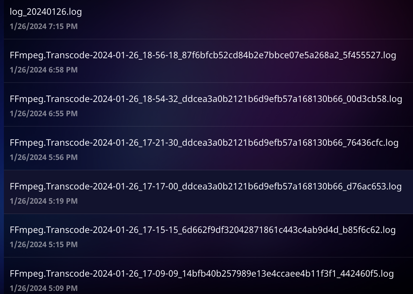 "the existence of FFMPEG logs indicates transcoding is occurring when playing things on your client, make sure you have setup hardware acceleration for transcoding *if available