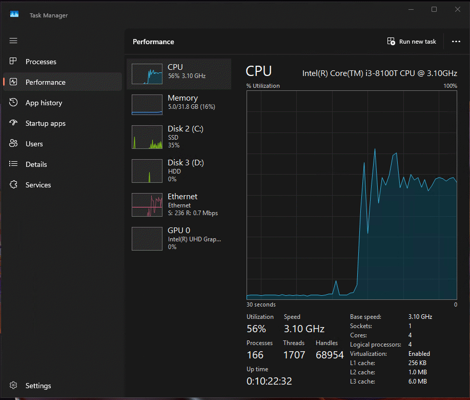 I'm out of ideas then. I was thinking maybe there was some sort of situation where your HDD wasn't able to keep up with the IO, causing the CPU usage to spike (this happens a lot of users running JF on a RPi).