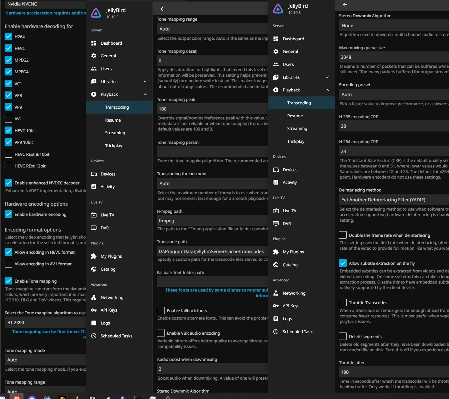 Since I don't know what all of my clients may be capable of, I'd like for my Jellyfin server to do the heavy lifting. Expectation is that any (most) devices / apps will be able to play media, whether it's native (raw) or transcoded server-side -- or get as close to that as possible. Happy to throw more resources at the server if needed, although I think I'm looking at incorrect (transcoding) settings. I don't want to go to each of my client devices and use unique settings or troubleshoot every app for the right setup.