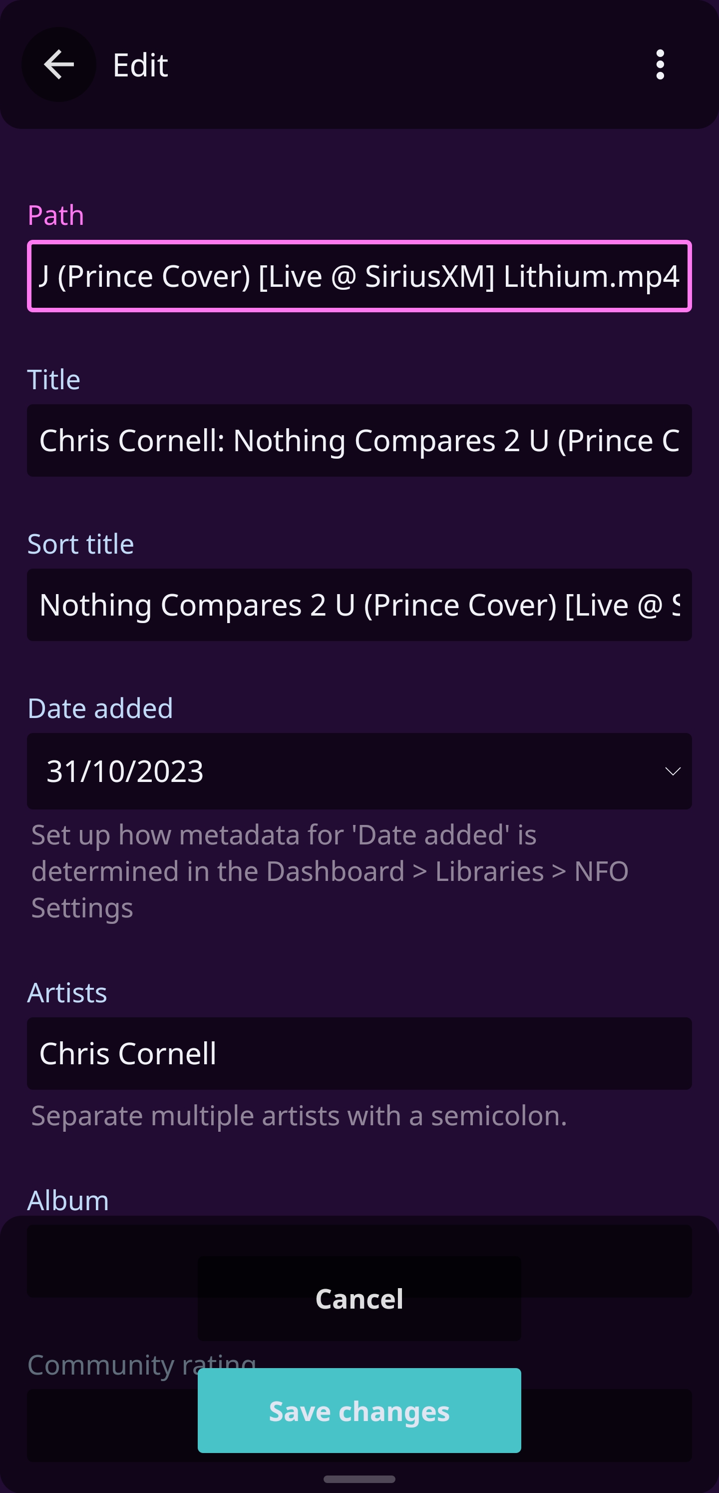 (2024-09-03, 01:26 AM)Kurt Wrote: 2- I have 3 music videos from Chris Cornell (mp4), on a library named, precisely, "Music Videos".