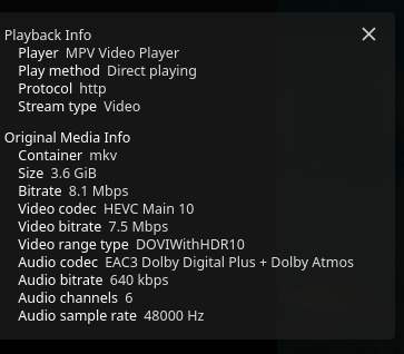 Under the hood it uses MPV, right? MPV running locally doesn't seem to have any issues. Could I try MPV directly against the jellyfin stream somehow, bypassing the app?