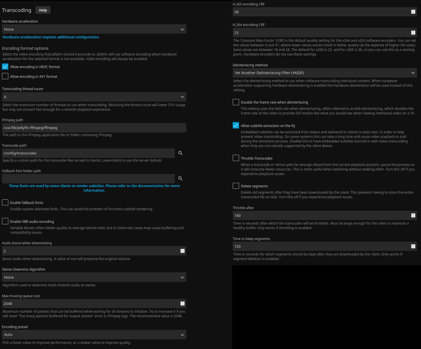 Please share settings from Jellyfin server under playback -> transcoding