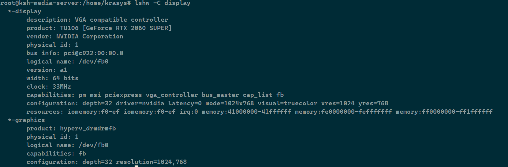 Good afternoon, dear forum users. I have a media server running in Hyper-V on an Ubuntu server. I decided to add a GPU to the Ubuntu server in order to use hardware acceleration. The GPU was successfully added, but I was unable to use hardware acceleration. When I enabled the Nvidia NVENC profile, ffmpeg crashed with the error "Provided device doesn't support required NVENC features