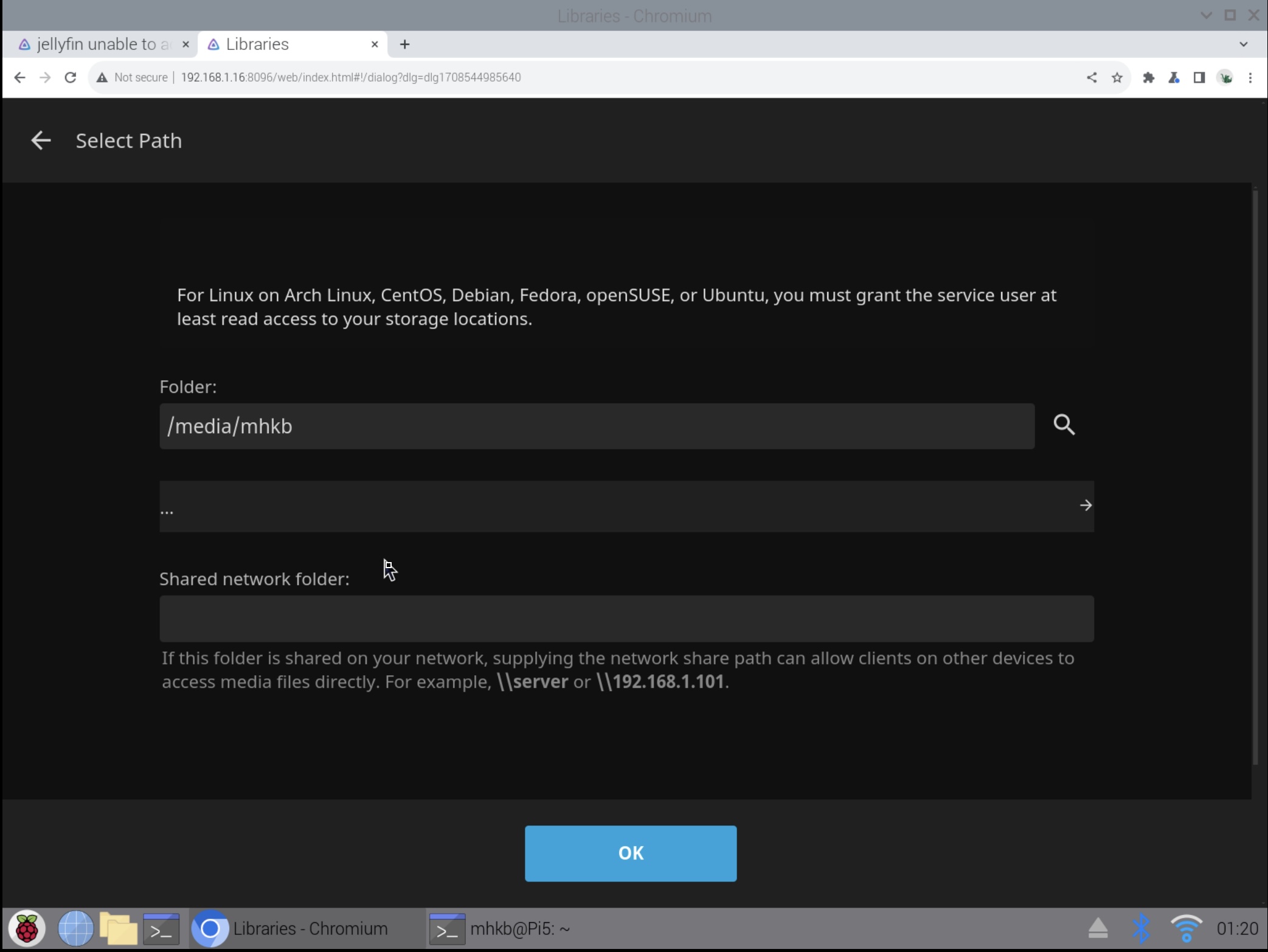 hi, i have installed jellyfin on Raspberry Pi 5 running PI 64 bit desktop bookworm os.