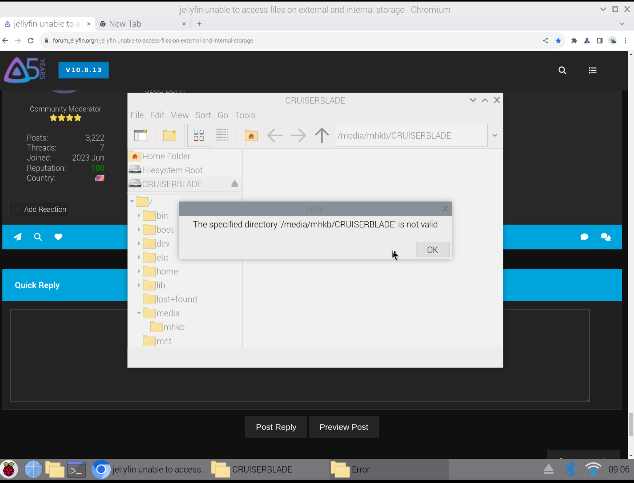 then i searched the web and ran some command (i forgot which cmd it was) and got access to usb stick in file explorer but now jellyfin cannot access both USB stick and SD Card .