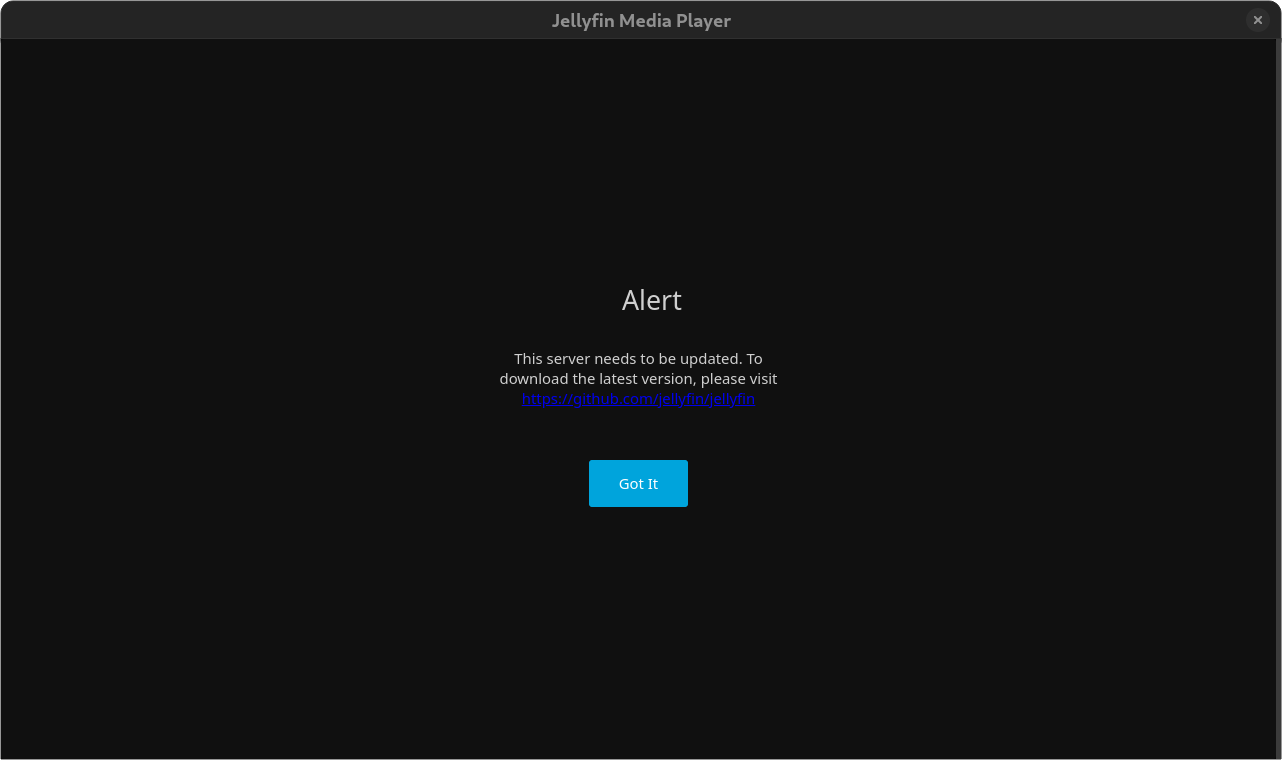 I'm running Jellyfin in Docker on my Raspberry Pi 5 and Jellyfin Media Player (Flatpak) on my laptop with Fedora. Recently I started receiving this message to update my server. I have made sure to update both the Media Player and the server on the Raspberry Pi. Every time I open the application it asks me to select the server again and gives me this message. I can't find a way around it.
