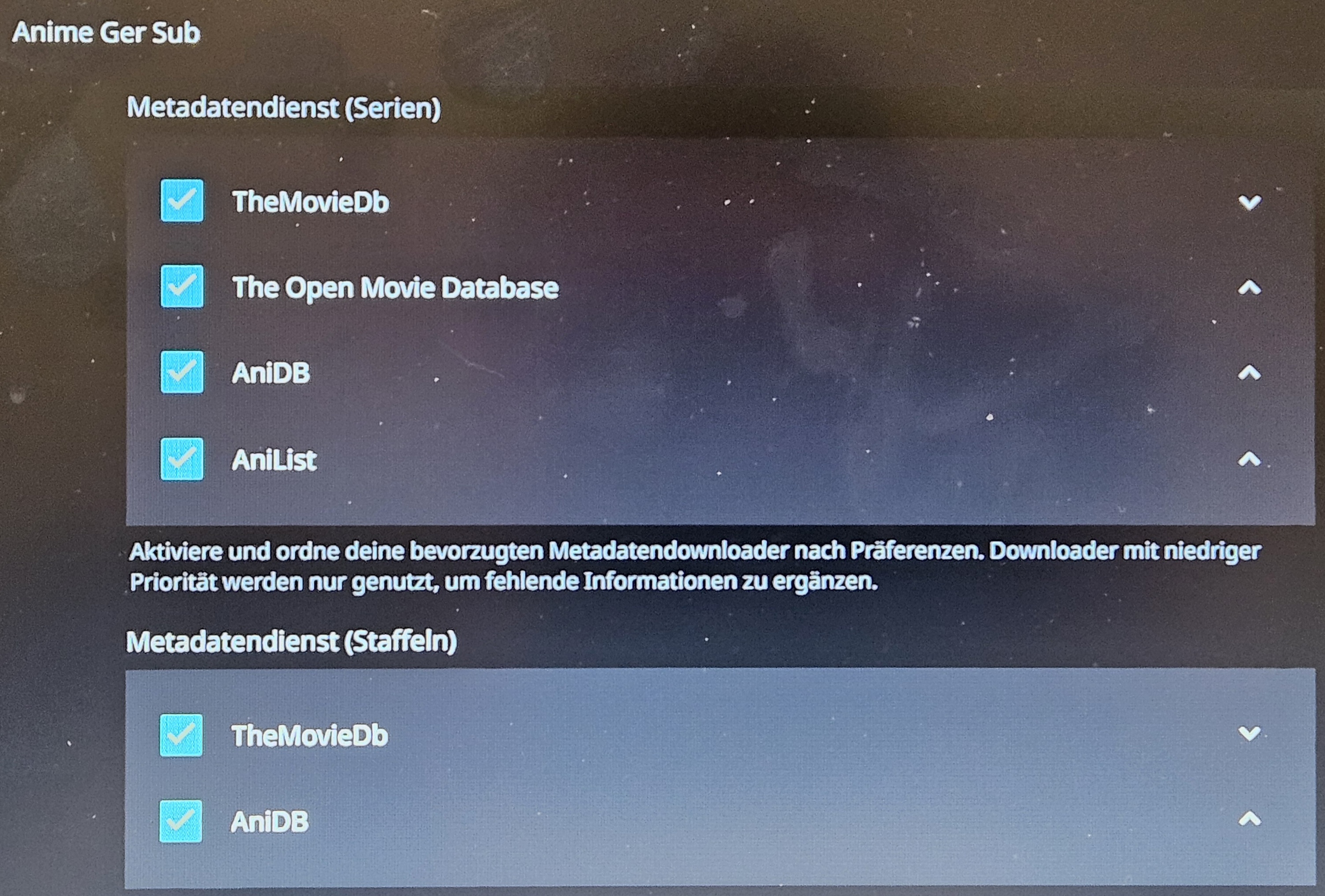 I will try it but I already used identify and picked the tmdb and open movie das base version without them grabing the games for season 2. I also had the problem with the Dragon Quest Anime not getting names what was the reason why I added anidb.