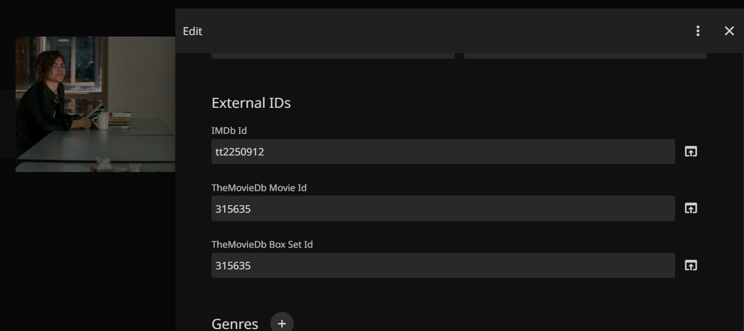 In the metadata i already fil movie id for IMDB and TheMovieDB with no helping. Anyone know why?