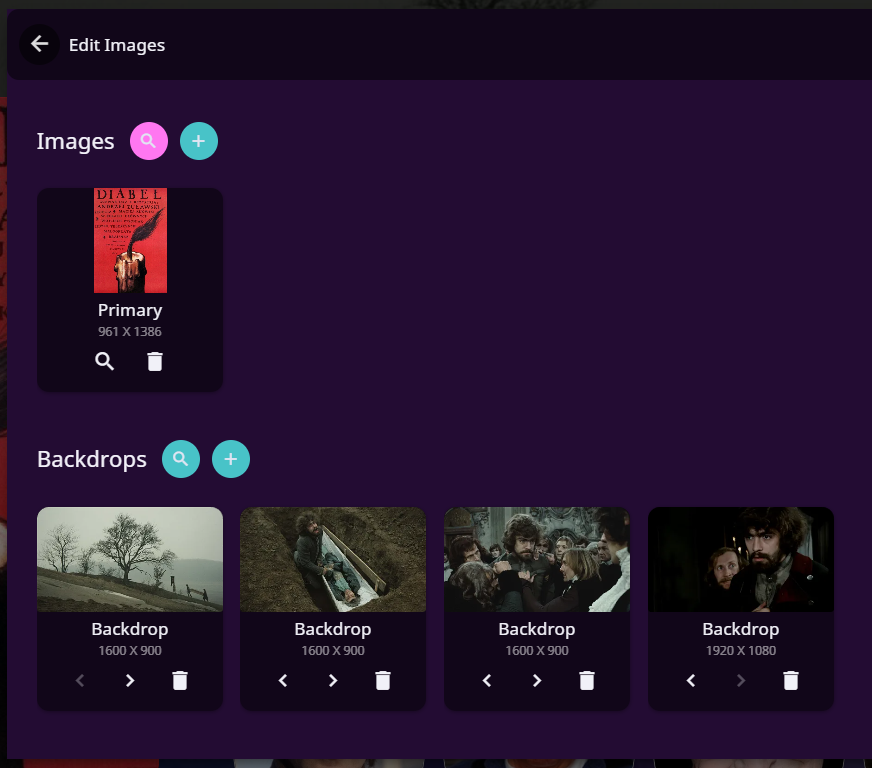 (2023-10-20, 06:50 PM)000 Wrote: yes, there is the + and magnifier at the top next to where it says "Images" is used for "ALL" image types the next window will have a dropdown list for backdrop if uploading an image, the dropdown won't appear until you upload something