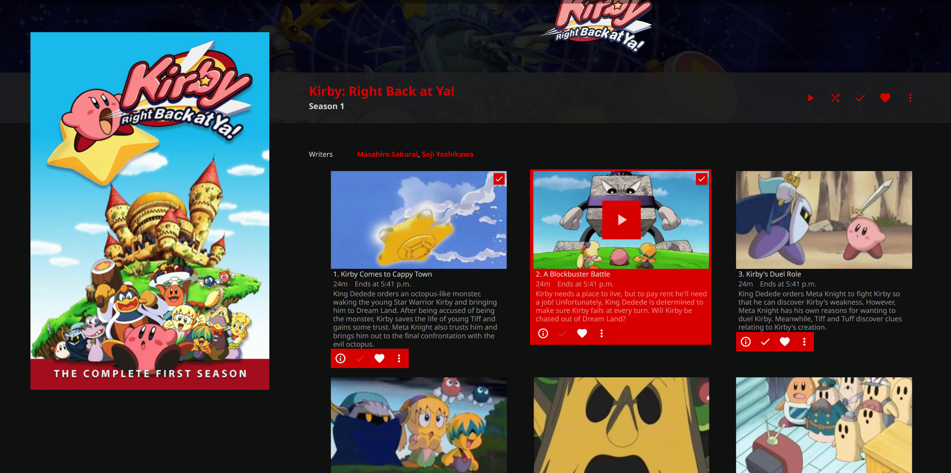I.e. An example episode's file for kirby would be titled: Kirby - Right Back at Ya! (2001) - S02E05 - 031 - Abusement Park