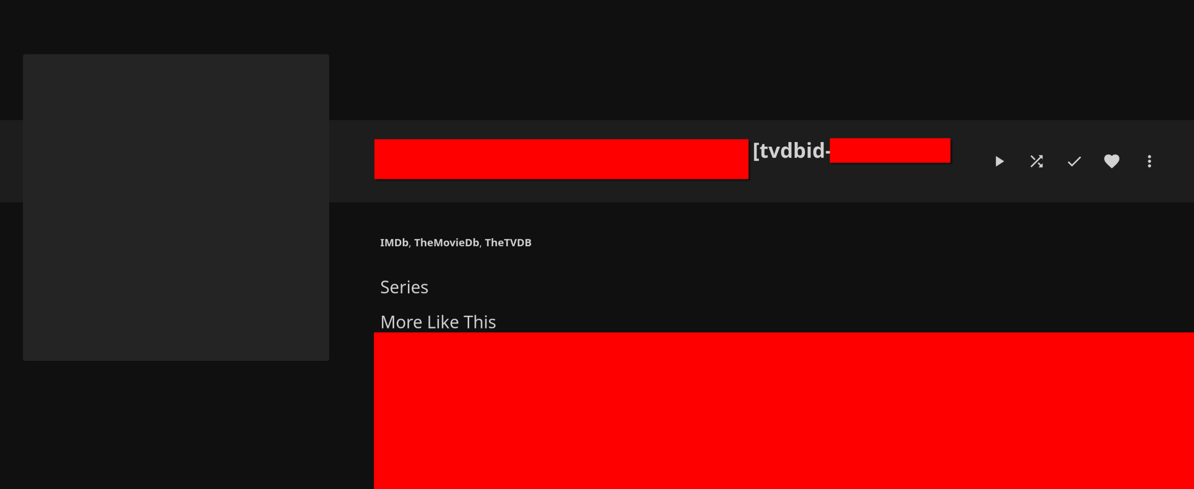 Despite this, searching for "S{season}E{episode}", you can find and play each of the individual episodes, but as with the series itself, no metadata is shown. Looking at the metadata explorer however, the series itself shows up, but there are no episode files listed under it, despite them being discoverable by the search, as mentioned before, as well the episodes being accessible in the filesystem (the jellyfin user is a member of the multimedia group):