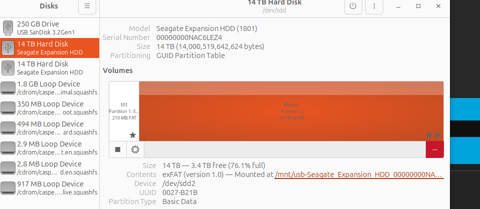 /dev/sdc2 on /media/blaze/Media1 type exfat (rw,nosuid,nodev,relatime,uid=1000,gid=1000,fmask=0022,dmask=0022,iocharset=utf8,errors=remount-ro,uhelper=udisks2)
