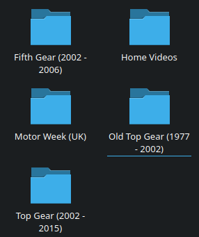 The folder I called "Ashow" represents a large collection of Top Gear related content I have. The folder contains the show itself and some spinoffs.