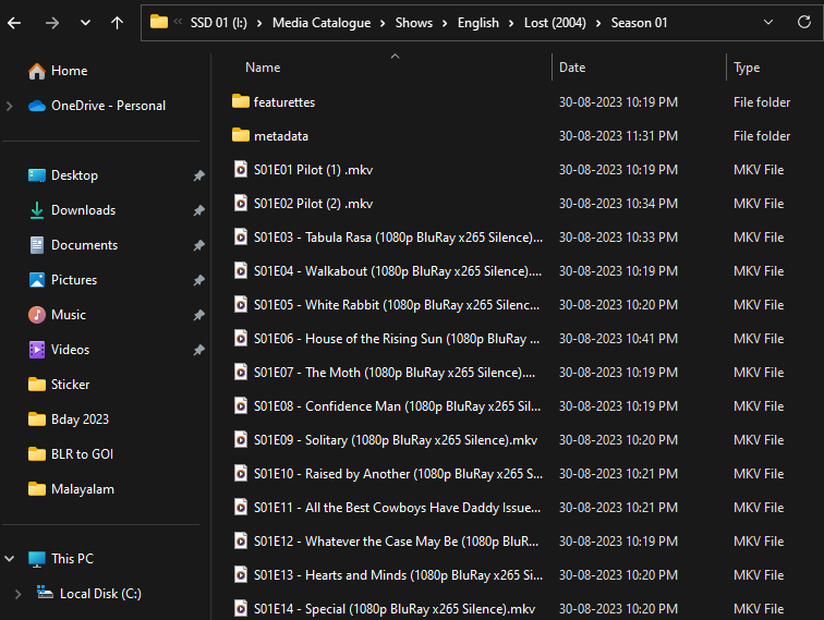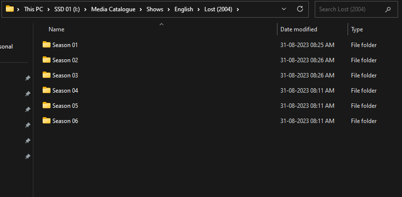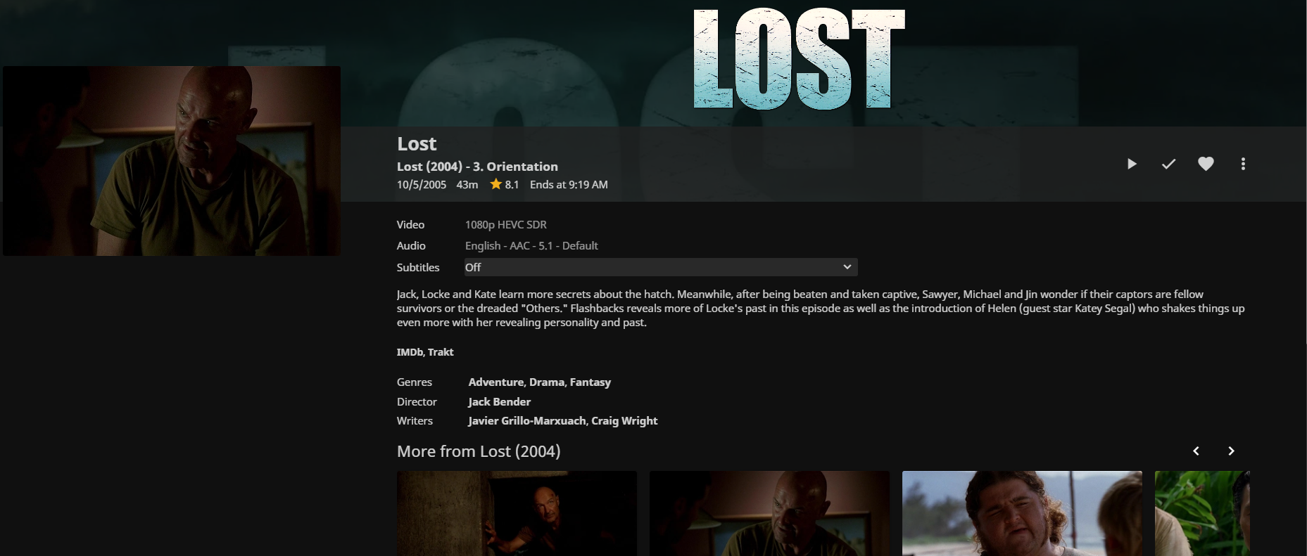 I have created the media library as specified by the Jellyfin Guide - { Lost (2004) > Season 01 > S01E01 Episode name.mkv } And so on