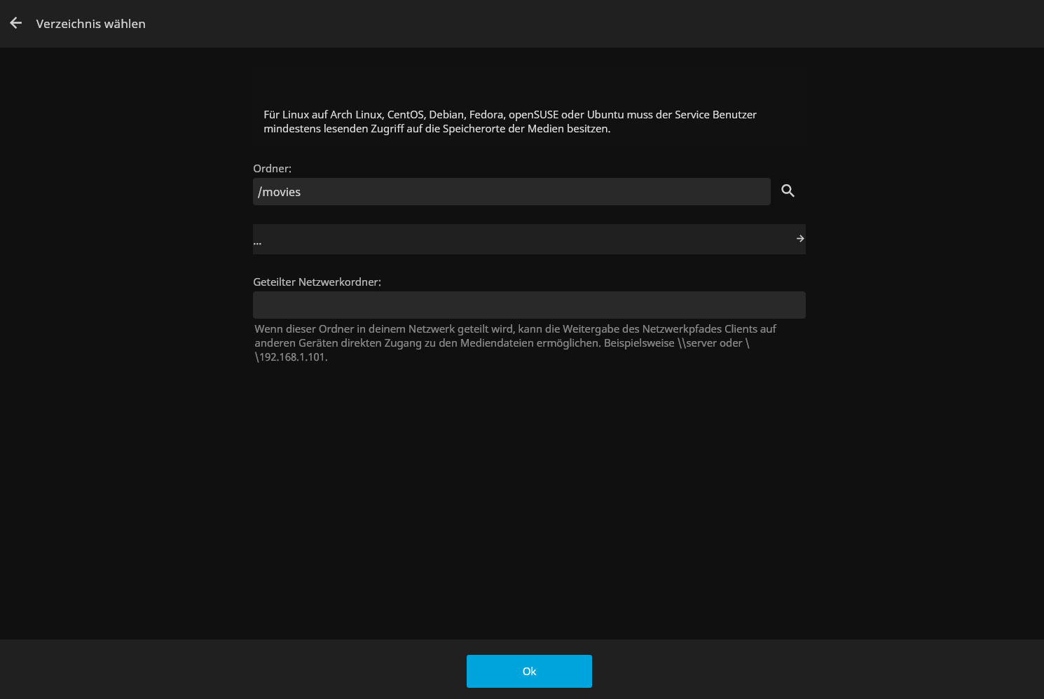 In the menu where you can choose the directory, I can go into all the subfolders of the series folder but the movies folder doesn't show any subfolders.