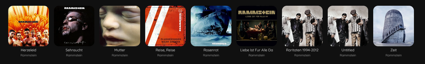 • Albums: Raritaten, the untitled album that is usually called 'Rammstein', Skills in Pills.