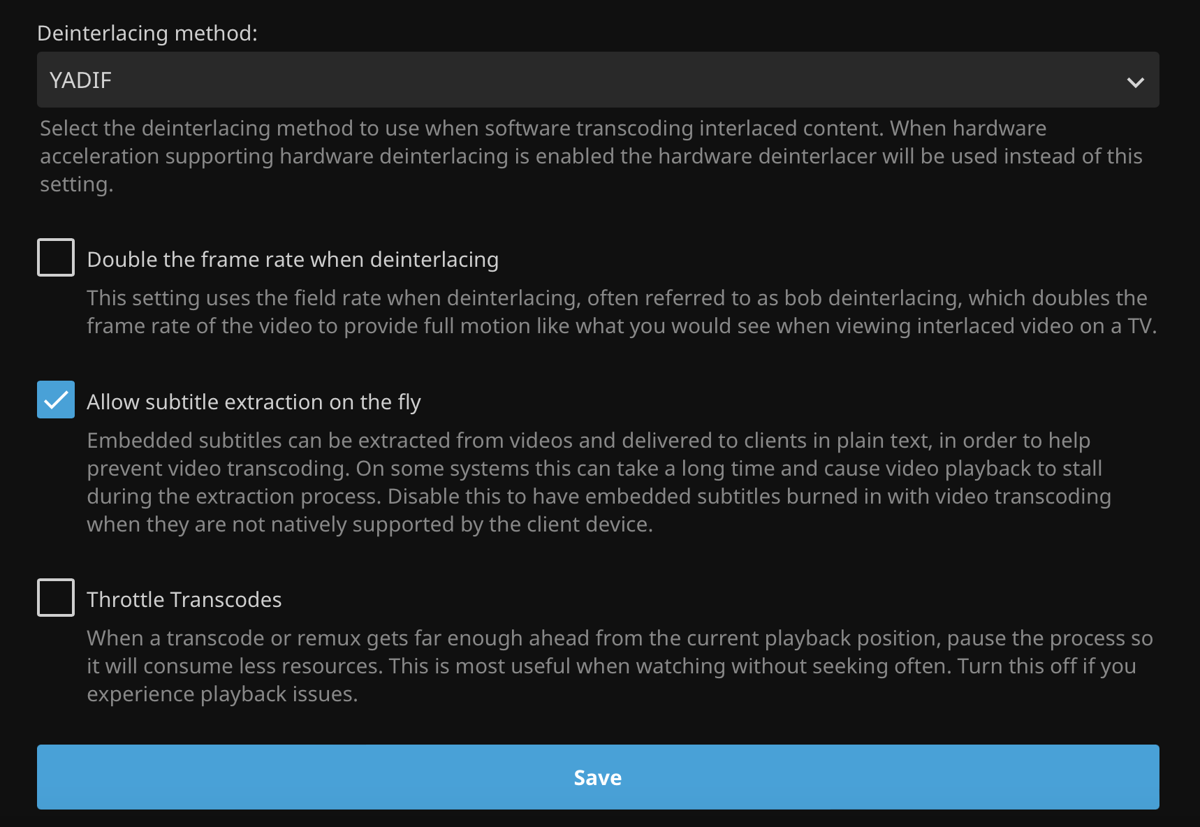 [color=#000000][21:27:22] [INF] [1] MediaBrowser.MediaEncoding.Encoder.MediaEncoder: Available filters: ["deinterlace_qsv", "deinterlace_vaapi", "hwupload_cuda", "hwupload_vaapi", "libplacebo", "overlay_opencl", "overlay_qsv", "overlay_vaapi", "overlay_vulkan", "overlay_cuda", "procamp_vaapi", "scale_cuda", "scale_opencl", "scale_qsv", "scale_vaapi", "scale_vulkan", "tonemap_cuda", "tonemap_opencl", "tonemap_vaapi", "vpp_qsv", "yadif_cuda", "zscale", "alphasrc"][/color]