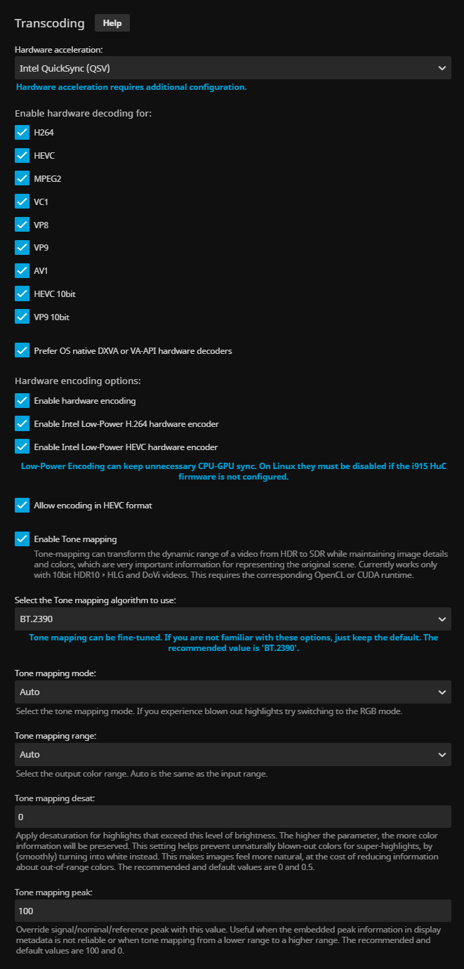 Possibly related, I don't think tone mapping is happening on the GPU, I think the CPU is doing it. My reasoning is 1, transcoding is obviously bottlenecked by the tone mapping and did not get any faster with the new GPU (transcoding without tone mapping did get faster) and 2, I get a massive spike in CPU usage when tone mapping, which doesn't happen when I'm transcoding without tone mapping. Is that possible? Is there some way of telling Jellyfin to use one or the other?