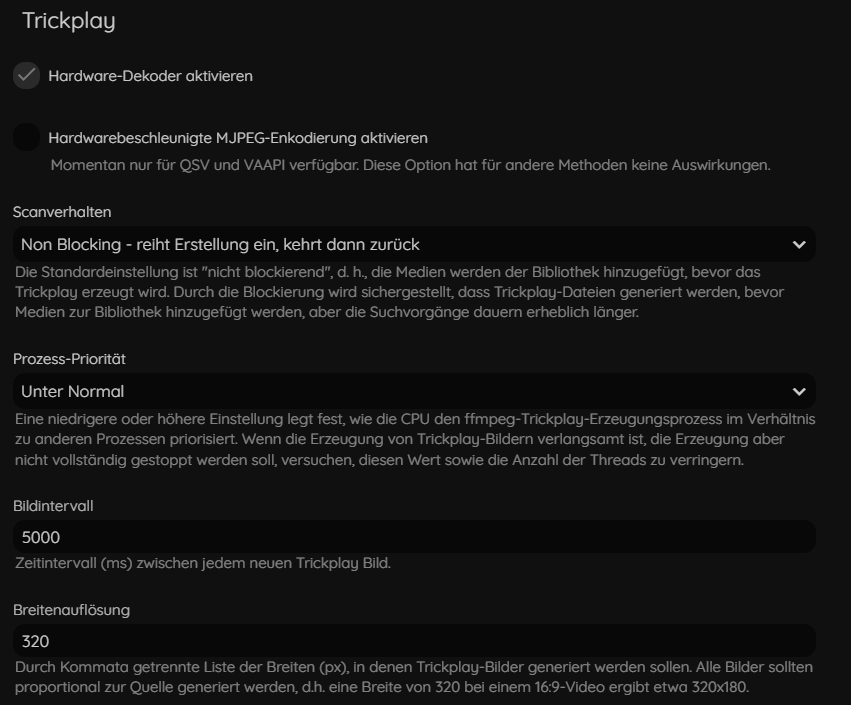 Screenshots Jellyfin Trickplay Settings & scrubbing preview