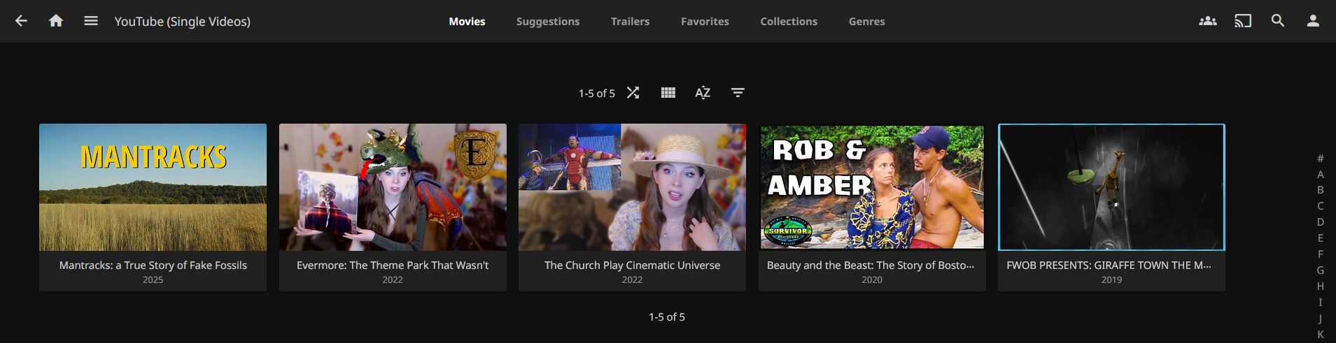Everything scans as expected, with the video thumbnail automatically getting pulled in per the library's fetcher settings, even using Screen Grabber as a fallback for thumbnails that can't be fetched as seen in the last video in the list.
