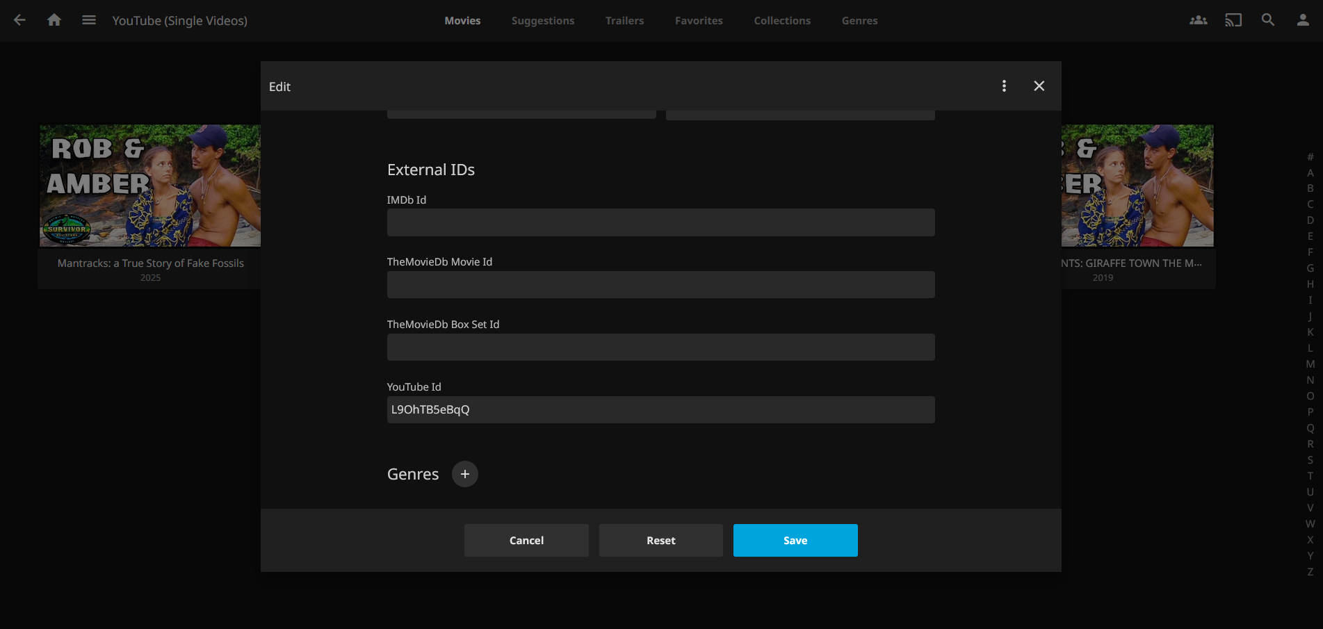 Looking into the metadata settings of each video, the YouTube ID still correctly points to the video in the External IDs section, and all other metadata scrapped from YouTube (the release year, the creator, the video description, etc.) all seem to be preserved as expected.