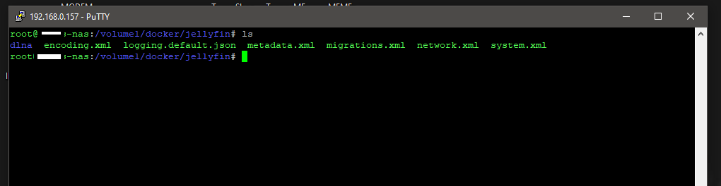 What you should have done at the start is this: /volume1/docker/jellyfin : /config:rw