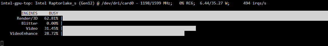 I have Jellyfin on unraid with the "--device=/dev/dri" extra parameter installed on an intel i7-14700K, I've also installed the intel top plugin. I have tried to use intel quicksync but the only thing that seems to work is VAAPI. When I select that in the playback section of the settings, I get "/dev/dri/renderD128" as the device.