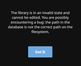 Then, when playing around even more, trying to reconfigure the created Library, I get the attached - at which point, the only solution is to "Remove".