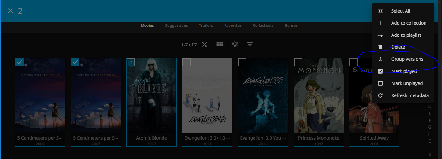 Also long clicking just opens the movie title, the same as regular clicking for me, and I can't find any option(s) in the context menus to group versions. Im also hoping to not have to manually do this for every problematic title, it would be better to identify the root cause so that Jellyfin can identify properly and automatically do this.