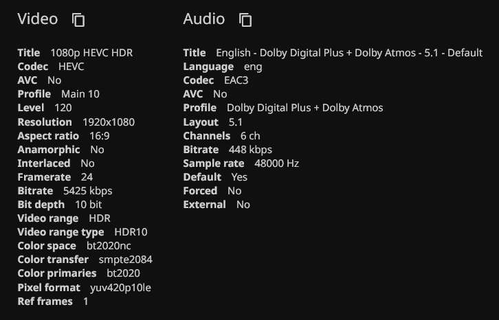 The videos that are causing issues have the following specifications (see screenshot #1, which uses the AAC audio codec). For reference, I've included the specifications of another video that streams without any problems (see screenshot #2).